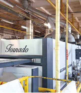 Предприятие с 2011 года активно занималось техническим переоснащением. За это время было затрачено более 200 млн долларов инвестиций, мы модернизировали все шесть фабрик, которые сейчас функционируют. Из них три фабрики – производственные. Фабрика № 1 специализируется на переработке короткого волокна. Это все, что касается технической продукции. Прежде всего выпускается низкономерная пряжа – из нее делают брезент, упаковочный материал, шпагат от двух до восьми ниток сложения, веревки до 12 мм толщины, техническую ткань, упаковочную мешковину, ткань для художественных работ. На этой же фабрике установлены линии, которые перерабатывают все твердые отходы, которые образуются в процессе производства по всему комбинату. Из них делают топочный брикет, и в осенне–зимний период мы полностью обеспечиваем себя тепловой энергией. Также установлены четыре линии по производству котонизированного волокна. Одна линия французского производителя Laroche, другая – австрийская Temafa, австрийско-швейцарская Temafa Rita и китайская. Сейчас фабрика находится в стадии модернизации. Мы планируем в этом году вложить в нее 20 млн долларов. Будет установлено кольцепрядильное оборудование, которое позволит производить высокономерную пряжу из котонизированного волокна с добавлением вискозы. Это поможет нам существенно сократить нехватку длинного высокономерного волокна для фабрики № 3, изготавливающей очень тонкие ткани.
