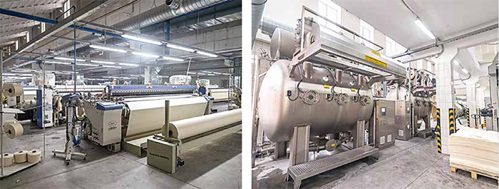 В отделочном производстве креп-жаккард прошел следующие этапы: отварка на 95 градусах и после этого умягчение на тамблере для усаживания ткани и придания ткани мягкости, воздушности и гидрофильности. Из полученных образцов ткани сшили различные варианты готовых изделий – простыни, изделия для бани и SPA центров, банные халаты, килты, полотенца. Преимущество ткани, в составе которой есть лён, заключается в том, что льняное волокно не нагревается в бане и сауне, поэтому высокий спрос на льняные изделия в России не теряет актуальность. Креп-жаккард легко прошел через этап разработки, мы не столкнулись со сложностями. Думаю, это связано с несколькими факторами. Во-первых, это достаточно большой опыт разработки тканей, наши сотрудники имеют хорошие теоретические и практические знания в текстильном производстве. Ключевые позиции занимают люди с профильным текстильным образованием и большим опытом работы на предприятиях легкой промышленности. Во-вторых, современное ткацкое и отделочное оборудование позволяют нам обеспечить быстрое внедрение проекта в опытную партию, а затем оперативно перейти к промышленному выпуску тканей и готовых изделий.